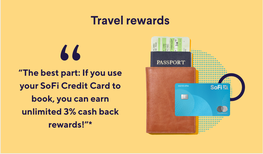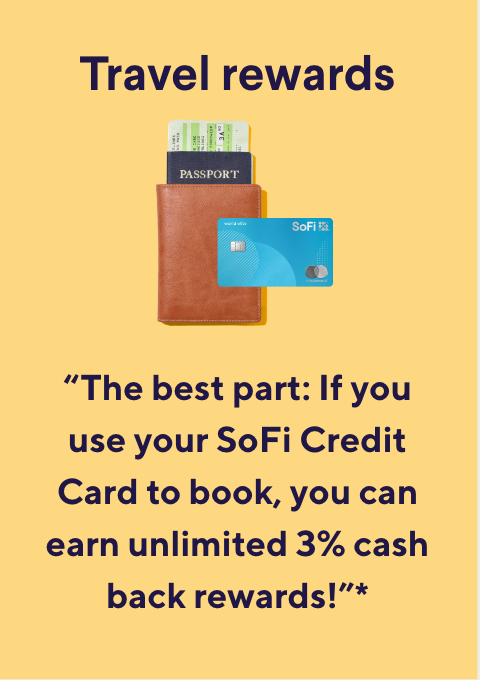 Earn unlimited 3% cash back rewards when you book with your SoFi Credit Card.