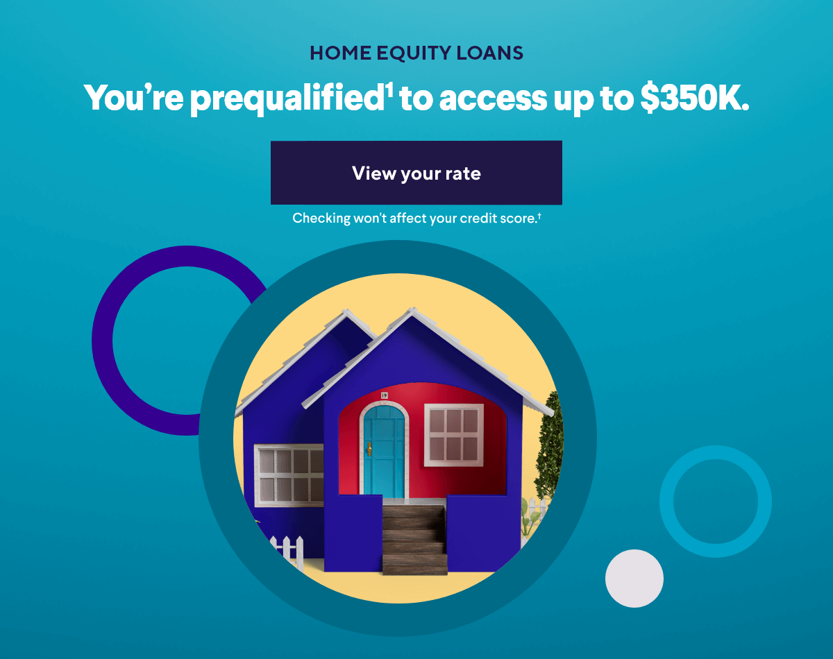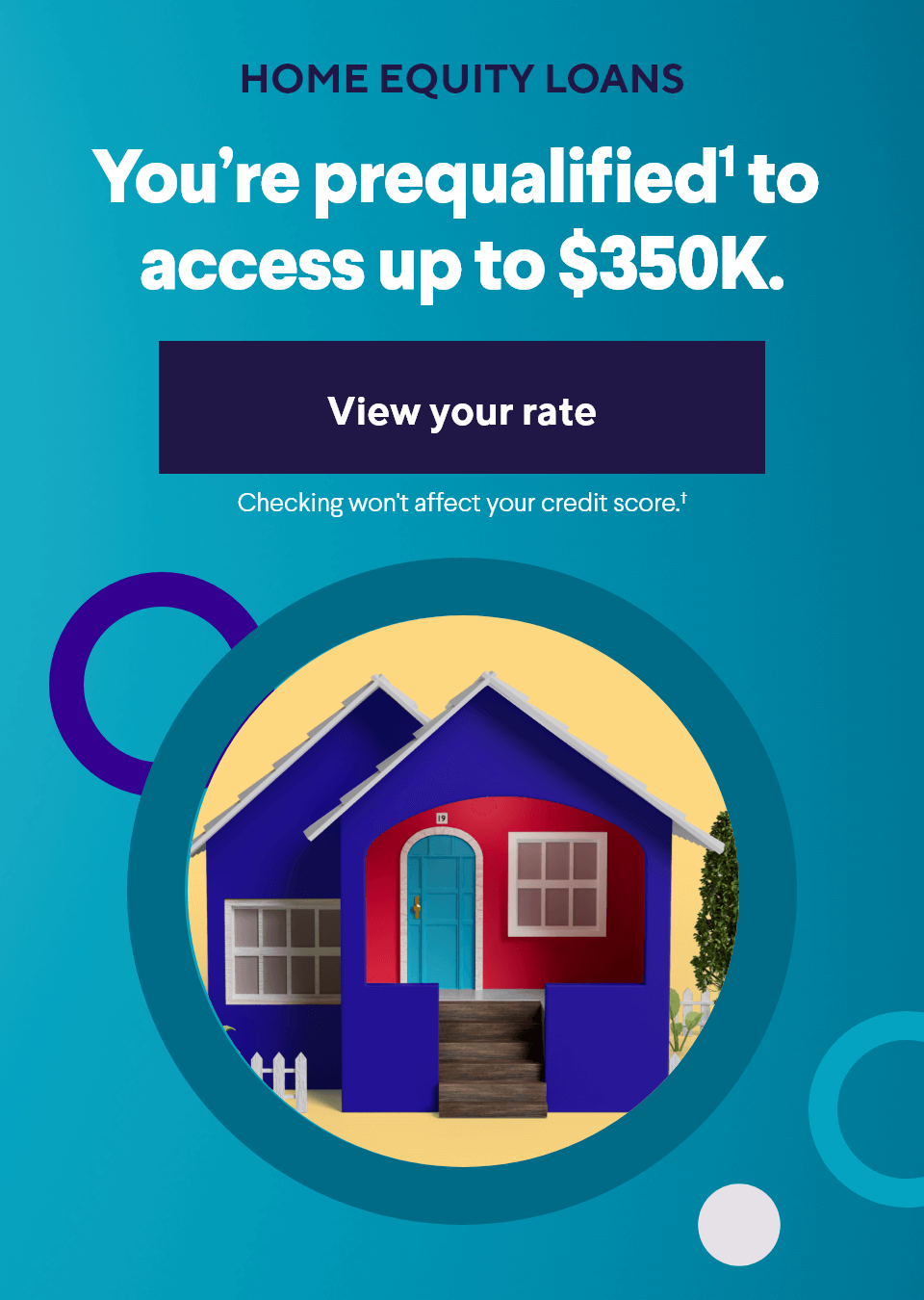 | | Janet, congratulations, you're prequalified to access up to $350K of your home's equity with a home equity loan. Offer expires 7/2/25. Wondering what a home equity loan even is? We've got you. | | | | | • | It's a loan that often comes with lower rates than an unsecured loan. | | • | You may use it to access to up to 85% of your home's equity (up to $350K). | | • | You even get a $200 discount2 if you're a SoFi member. | | | | | If you're ready to unlock the power of your home's equity, SoFi is ready for you. | | | | Checking won't affect your credit score.† | | | | | | You can choose to stop receiving "prescreened" offers of credit from this and other companies by calling toll-free 1-888-5-OPTOUT (1-888-567-8688). See PRESCREEN AND OPT-OUT NOTICE below for more information about prescreened offers. | | | | |