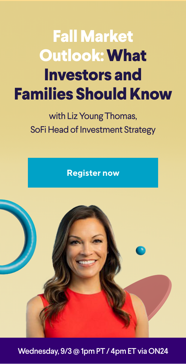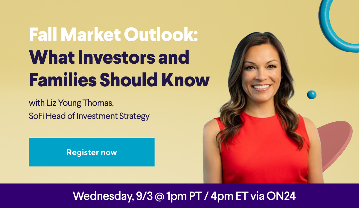 | | Hey, Janet—what pairs well with pumpkin spice? Market insights. Join Liz Young Thomas, SoFi's Head of Investment Strategy, for a webinar to help you start the season with smart money moves.