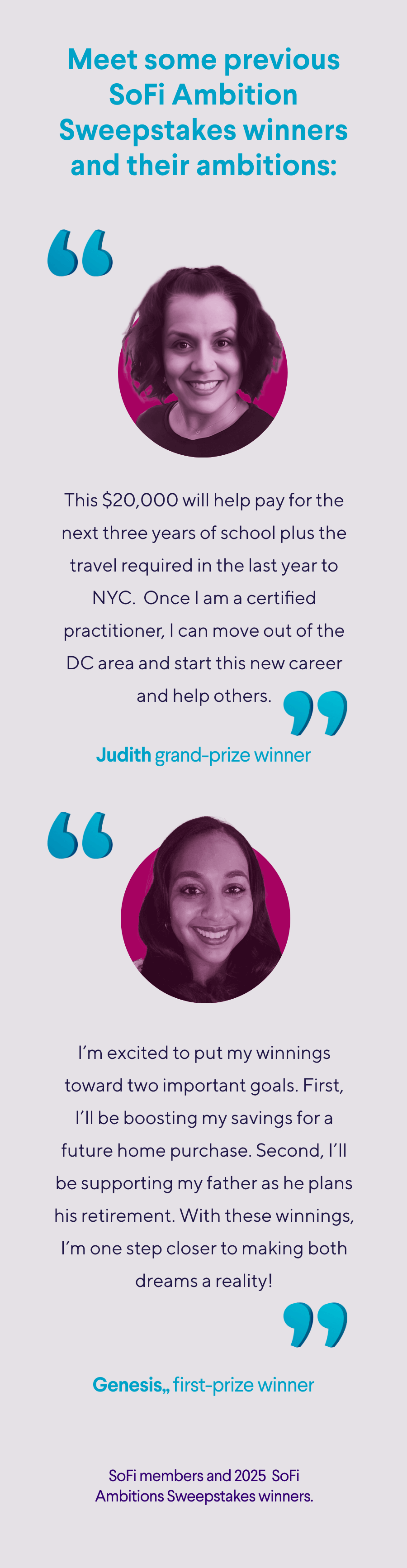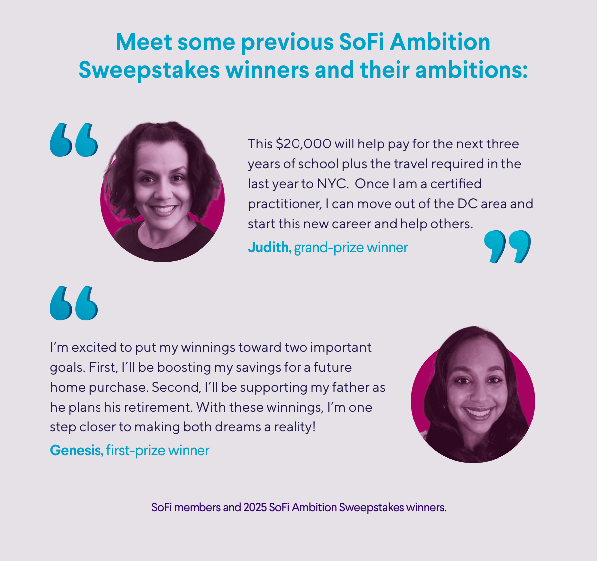 | | *NO PURCHASE NECESSARY. A PURCHASE WILL NOT INCREASE YOUR CHANCES OF WINNING. Open only to legal residents of the 50 US/DC, 18+. Void where prohibited by law. Sweepstakes ends at 11:59 pm ET on 8/31/25. Subject to Official Rules including alternate and free methods of entry, limits, prizes, and odds. Sponsor: Social Finance LLC ("SoFi") 234 First Street, San Francisco, CA 94105. | | | | The Ambition Sweepstakes is back to help you hit your money goals this summer 🔥 | | | | Hey Janet! Understanding your finances could help open the door to your ambitions this summer—and so could some extra cash. Enter the Ambition Sweepstakes for a chance to win $20K.*