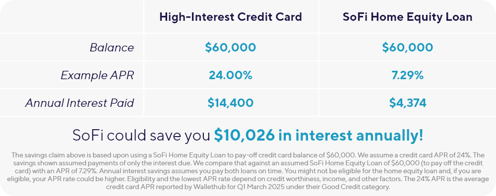 | | Could your home equity help you tackle your debt? | | | | Checking your rate will not affect your credit score.† | | | | *NO PURCHASE NECESSARY. A PURCHASE WILL NOT INCREASE YOUR CHANCES OF WINNING. Open only to legal residents of the 50 US/DC, 18+. Void where prohibited by law. Starts 12/28/25 at 11 am PT and ends 6/30/26 at 11:59 pm PT. Subject to Official Rules, including alternate method of entry, prize details, limits, and odds: click here. Sponsor: Social Finance LLC ("SoFi") 234 First Street, San Francisco, CA 94105. HL25‑2837151‑AA | | | | | | Hi Janet, a home equity loan from SoFi could help you take control of high-interest debt by consolidating it into one simplified payment. | | | | And right now, you could win $50,000* to consolidate high-interest debt during our Race To Your Goals $50K Home Equity Sweepstakes—now through 6/30/26.
