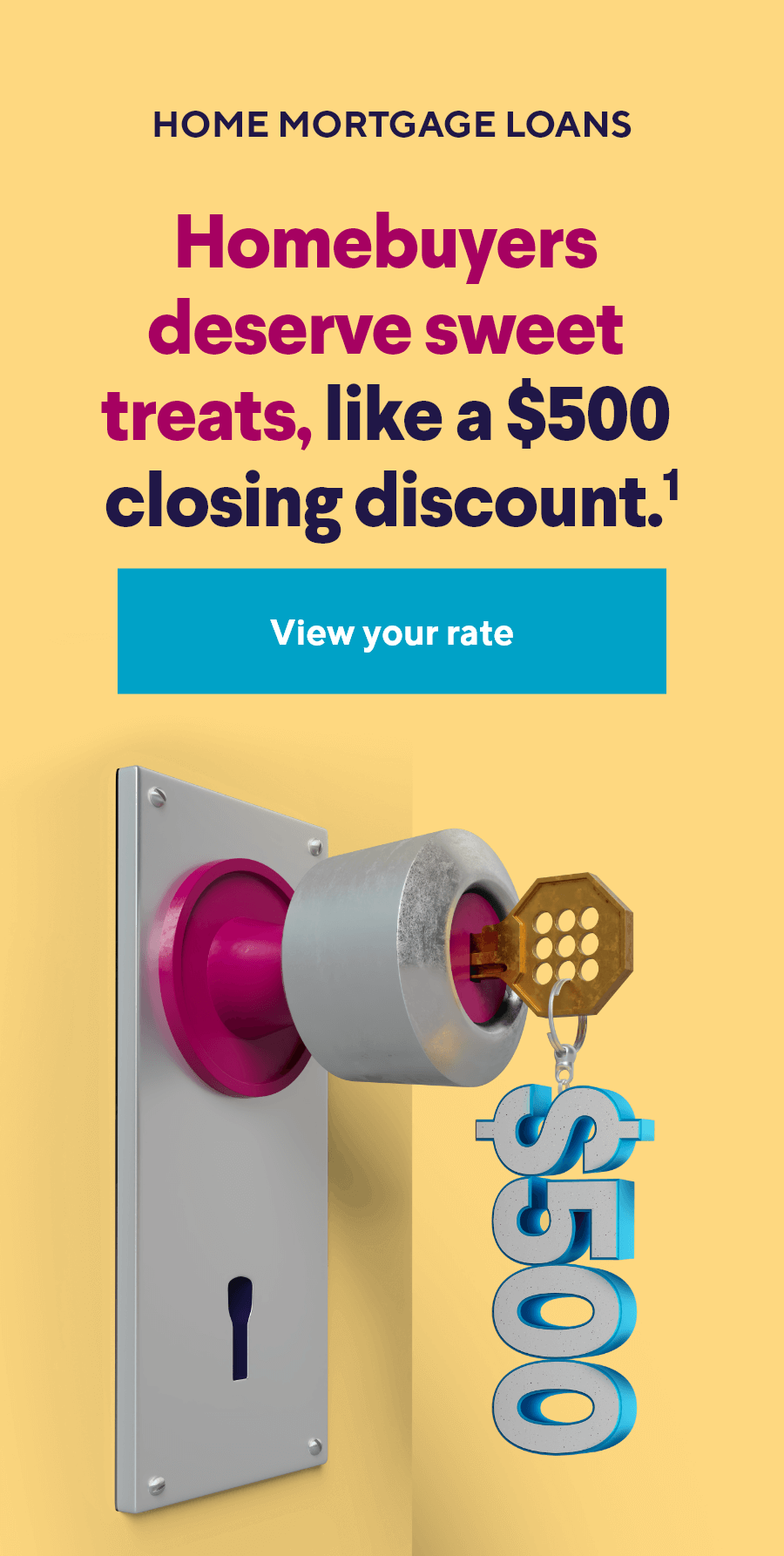 | | We love giving our members a little something extra, especially after buying a home. Some call it "the cherry on top" or the "icing on the cake." Us? We just call it a $500 discount¹ at closing. | | | | | | Still craving more from your mortgage? | | | | | • | 💰Enjoy a $10K On-Time Close Guarantee offer.² | | • | 🔒Get a $1K funded loan bonus (offer ends 12/31/27)³ | | • | 💎Subscribe to SoFi Plus and double your discount to $1,000 at closing.¹ | | | | | | | | | | | Checking won't affect your credit score.† | | |
