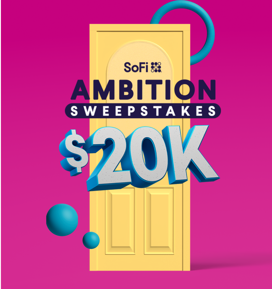 | *NO PURCHASE NECESSARY. A PURCHASE WILL NOT INCREASE YOUR CHANCES OF WINNING. Open only to legal residents of the 50 US/DC, 18+. Void where prohibited by law. Sweepstakes starts 2/16/26 at 12:00 AM ET and ends on 5/18/26 at 11:59 PM ET. Subject to Official Rules, including mail-in entry method, prizes, limits, odds, and restrictions; click here. Sponsor: Social Finance LLC (“SoFi”) 234 First Street, San Francisco, CA 94105. |