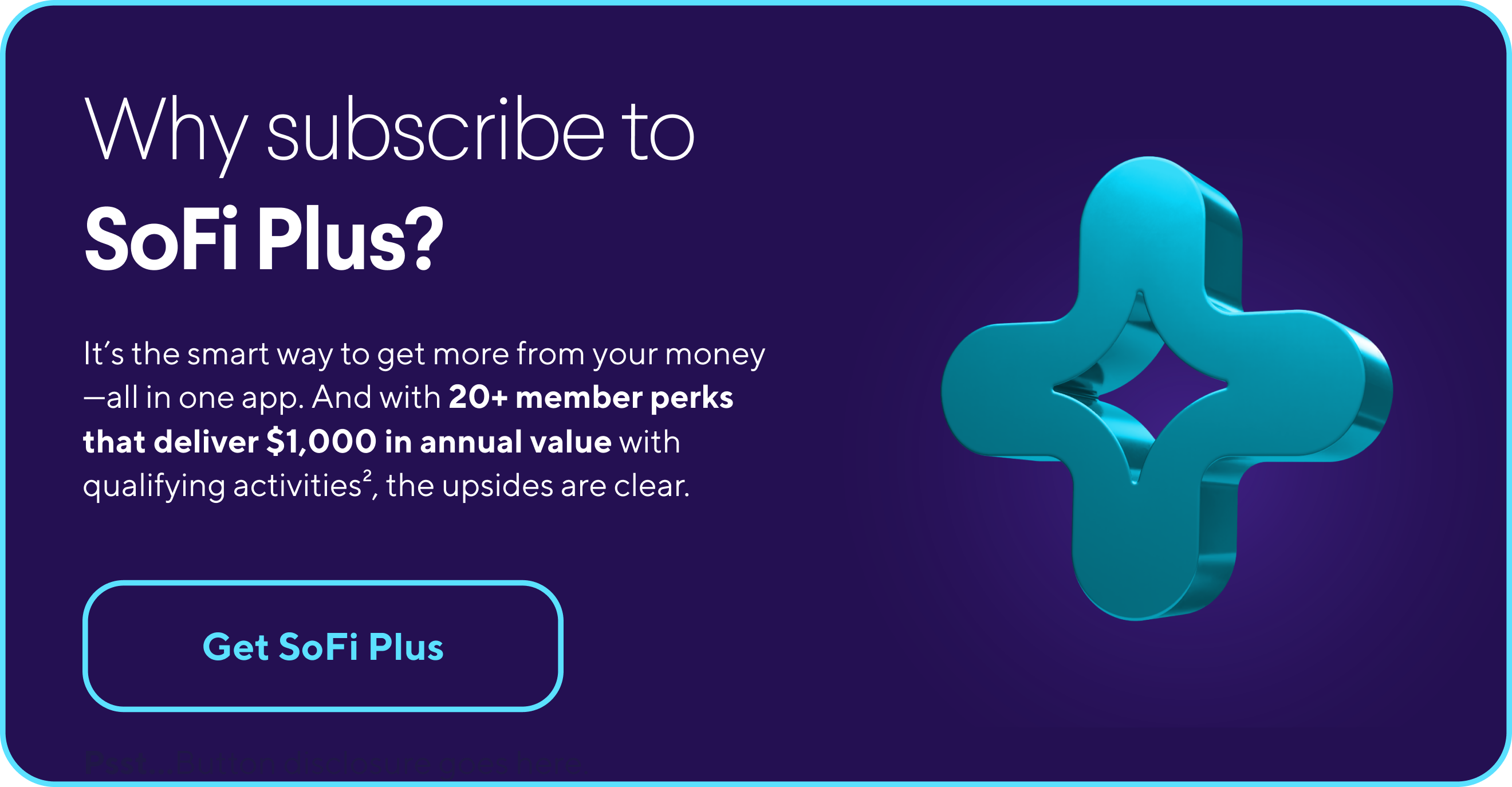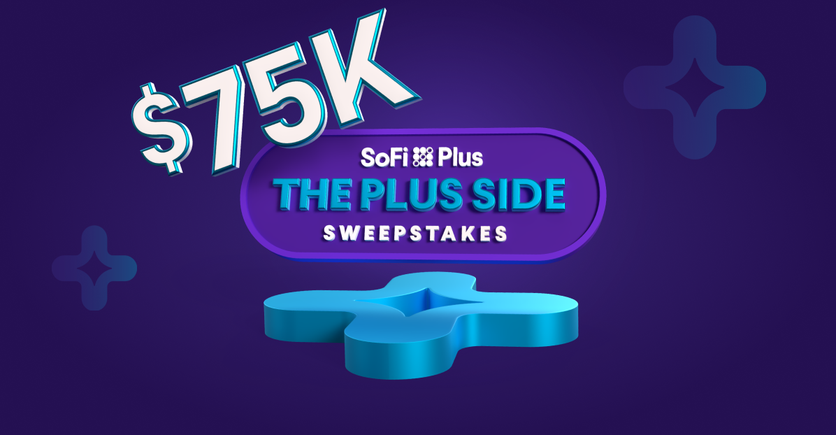 If you haven’t entered The Plus Side Sweepstakes yet, what are you waiting for? You don’t want to miss your chance to win $75,000 or other prizes.* Subscribe to SoFi Plus for $10/month¹ to enter by 4/15/26. |