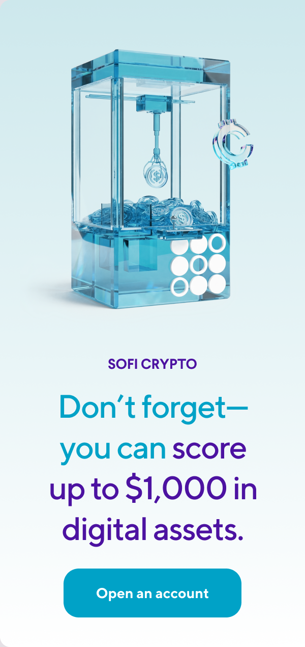 Remember: If you don’t have one already, you’ll need a SoFi Checking and Savings account to add your own funds to your SoFi Crypto account. Learn more about SoFi Crypto right here. Offer ends 6/30/26. Are you game? |