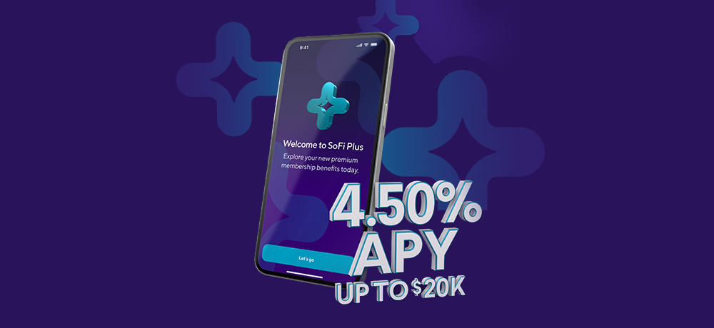 | | | | | 1SoFi Savings is a tiered-rate account for SoFi Plus Subscribers. Earn 4.50% Annual Percentage Yield (APY) on up to $20,000 in one SoFi Savings account, and 3.30% APY on all other Savings balances with a paid SoFi Plus subscription. Promotional APY boost offers cannot be combined on balances earning a 4.50% APY. Rates are current as of 3/31/26. APY is variable and subject to change at any time. There is no minimum balance requirement. Fees may reduce earnings. Terms apply at https://www.sofi.com/terms-of-use/#sofi-plus. See additional rates and information at: https://www.sofi.com/legal/banking-rate-sheet. SoFi Bank, N.A. Member FDIC.